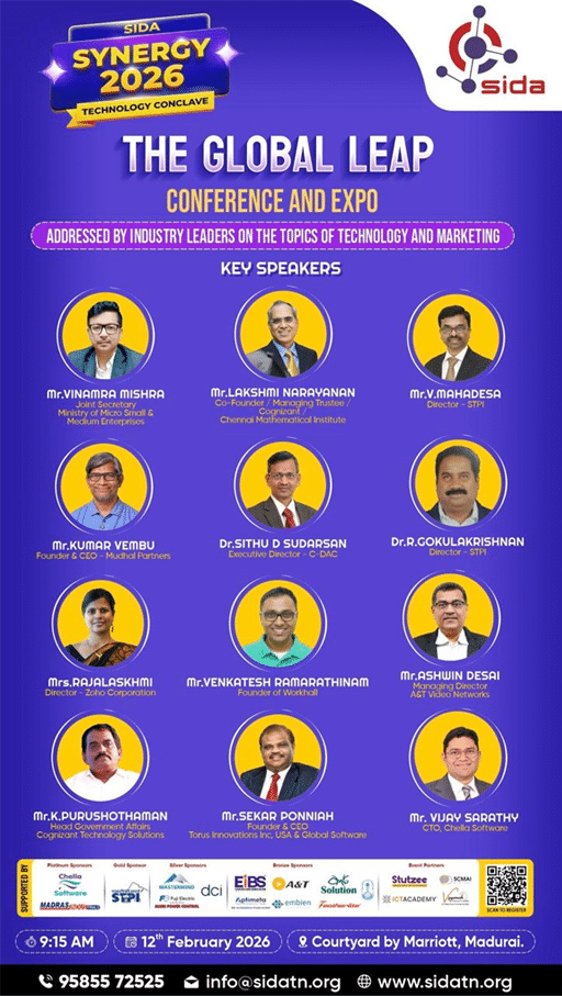 SIDA accelerates IT growth in Madurai and Southern Tamil Nadu through innovation, networking, and professional development. Join our community of tech leaders