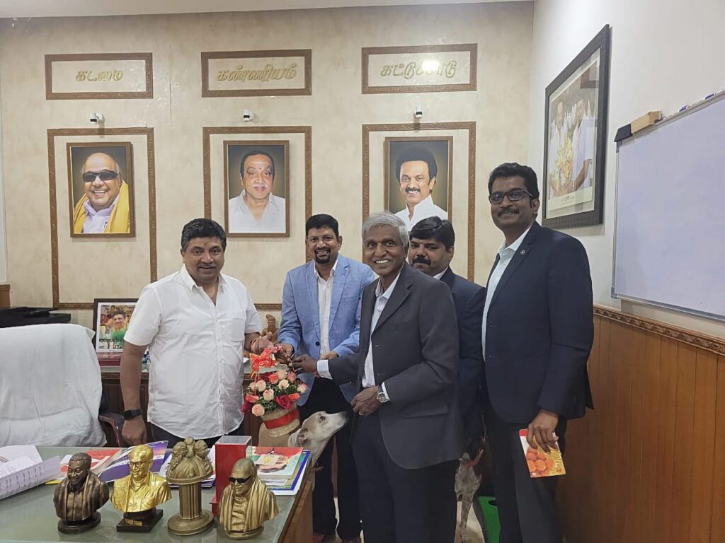 On the pre-noon of October 20th, 2024, the SIDA Leadership Team had the distinct privilege of meeting with the Honourable Dr. Palanivel Thiagarajan, Minister of Information Technology and Digital Services, Government of Tamil Nadu, at his Madurai office. The team President Mr. Prabhuram Ramamurthy, Treasurer Mr. N. Suresh, Secretary Mr. Saravana Pandian S.A., and Vice President Mr. M. Kutti Sankar presented the vision and work of SIDA and engaged in a productive dialogue with the Honourable Minister. The discussion focused on shared goals of strengthening the IT ecosystem in Tamil Nadu, with a particular emphasis on IT SMEs.